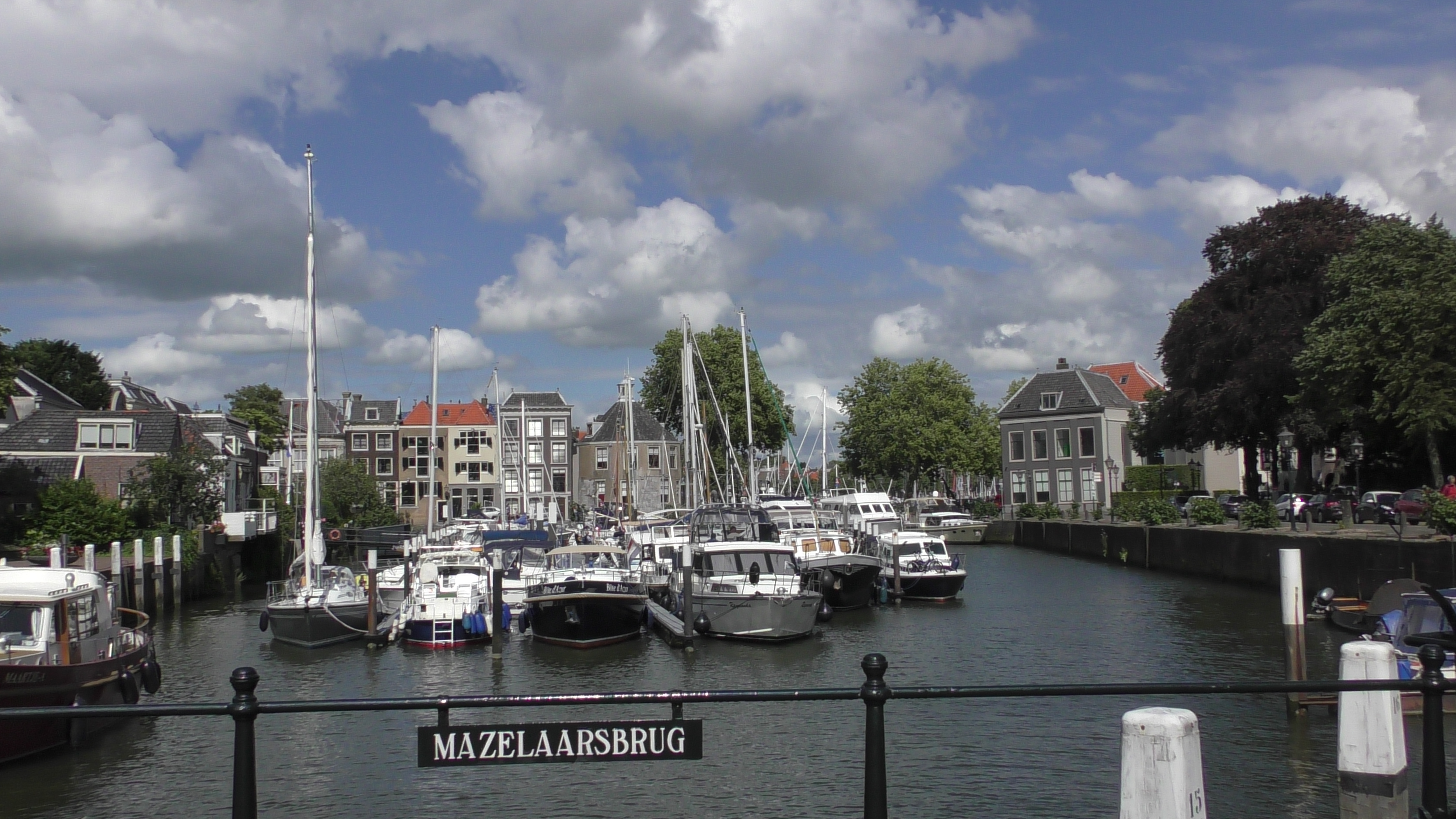 Vervolg routebeschrijving: Je ziet Dordrecht al van verre. Vanaf de Noord een klein stukje stuurboord uit, steek dan de rivier over in de richting van de Grote Kerk. Een bord aan de kade verwijst naar jachthaven Maartensgat. Die zit verstopt achter de Mazelaarsbrug.