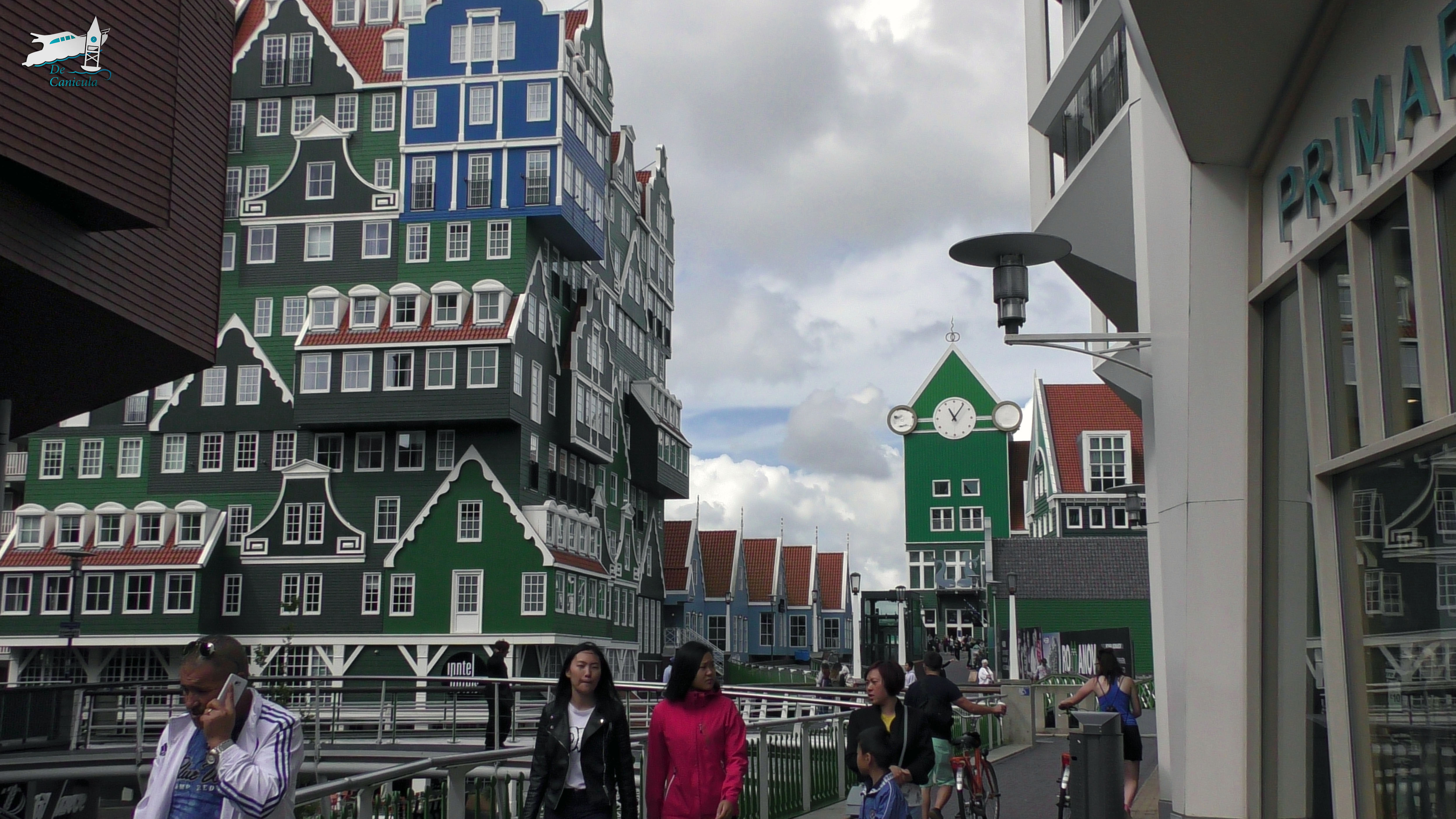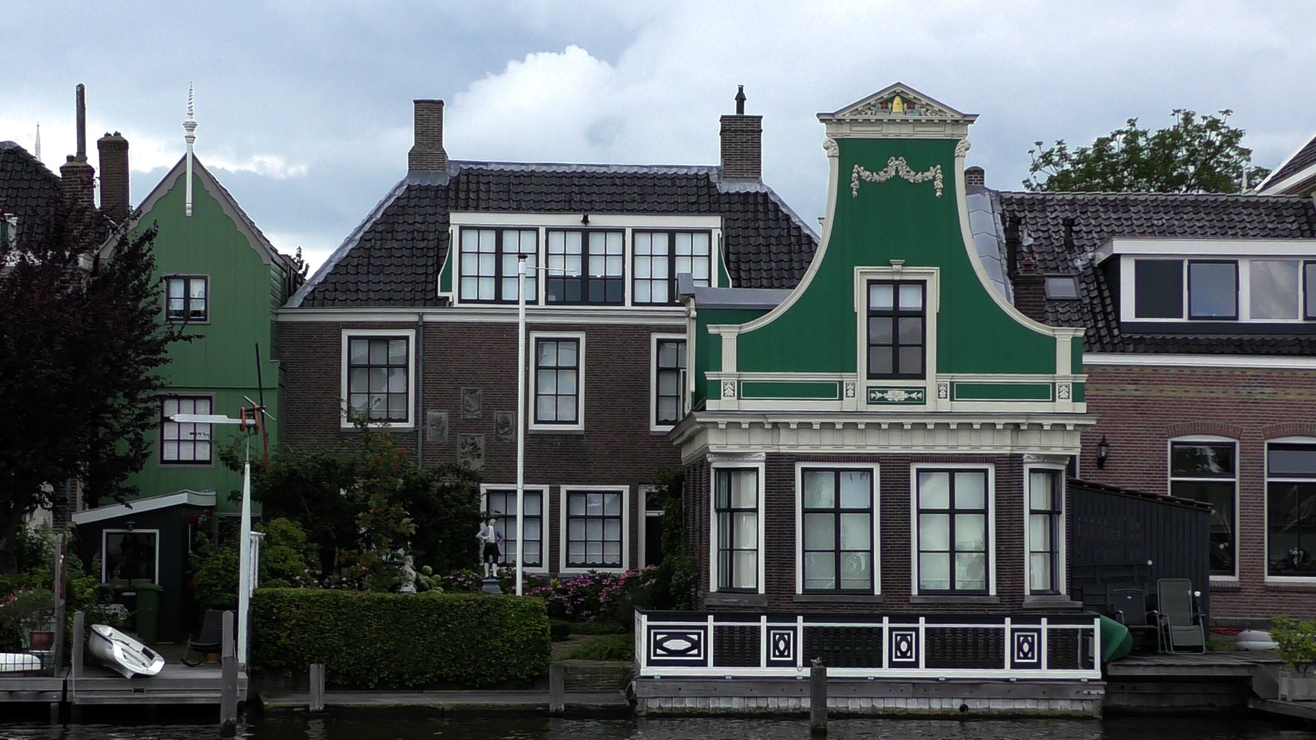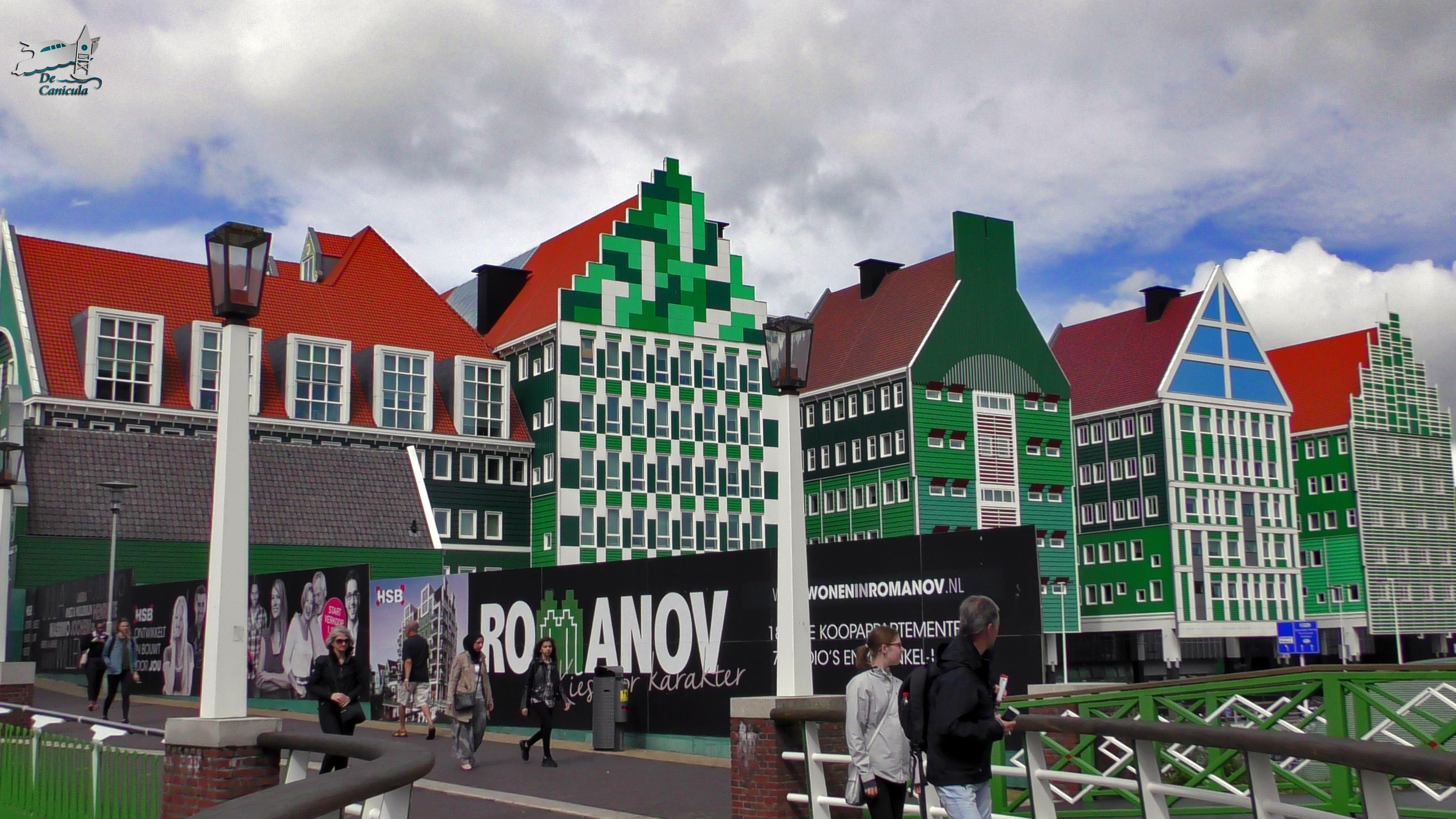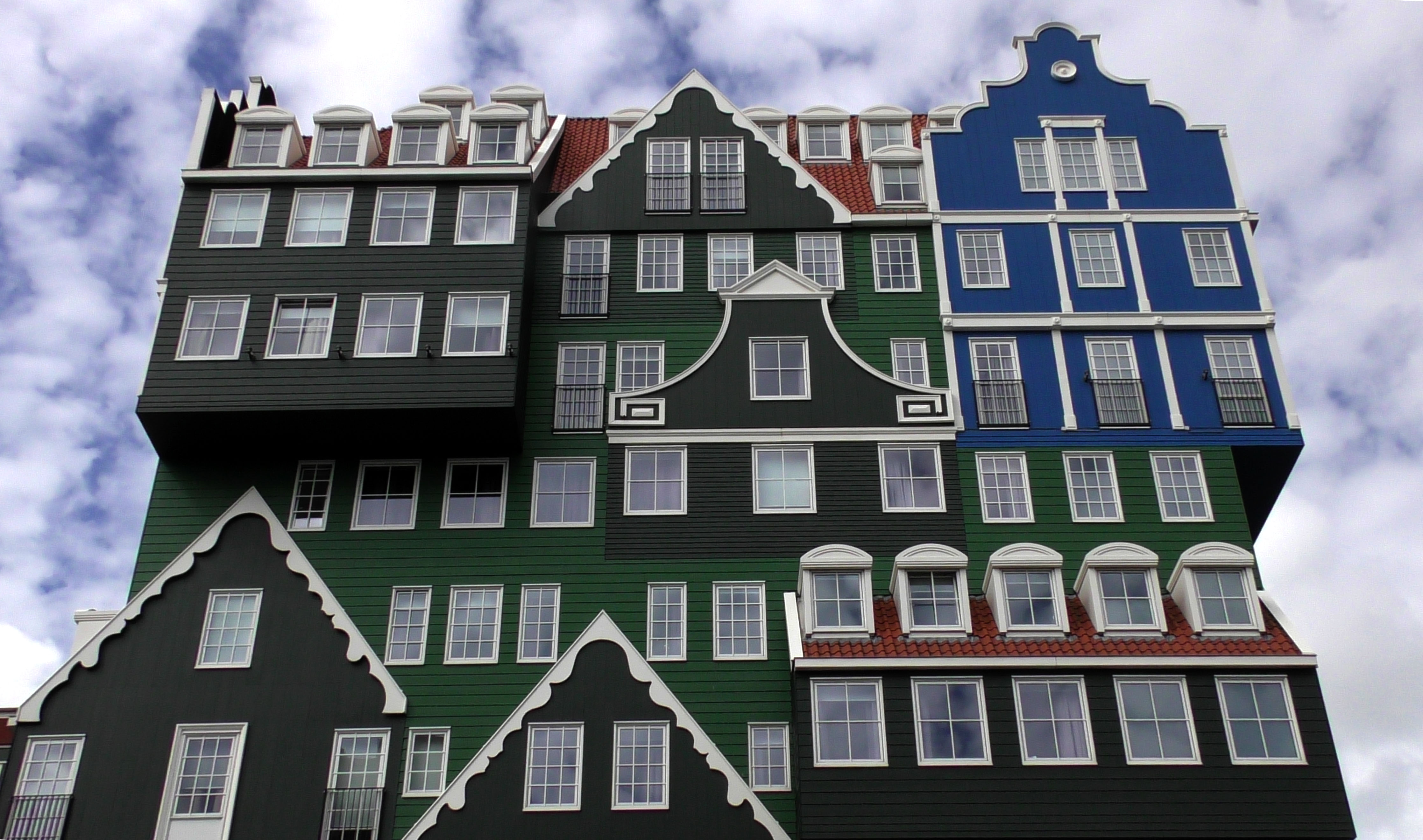 De gevel van dit hotel is versierd met Zaanse huisjes
